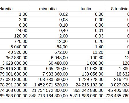 Kuvitellaan, että jutussa olisi kahdeksan (8) oikeudellisesti relevanttia seikkaa, joiden järjestys määrää tuomioistuimen johtopäätöksen. Vaihtoehtoja on silloin kahdeksan kertoman verran (8!) eli 40 320. Jos järjestysten pelkkään luetteloimiseen kuluisi yksi sekunti per järjestys, niin luetteloimiseen kuluisi 672 minuuttia eli 11,2 tuntia. Kahdeksantuntisia työpäiviä kuluisi 1,4. Jos oikeudellisesti relevanttien seikkojen lukumäärä kasvaisi seitsemästä kymmeneen, niin luetteloimiseen …