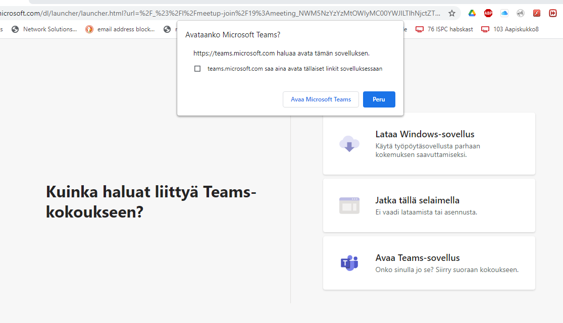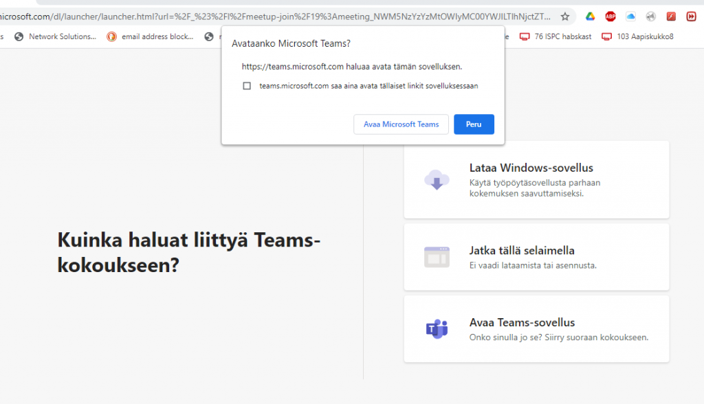 Nettikokoukseen osallistumista voi harjoitella tuon linkin kautta jo ennen kokousta. Häiriöistä pyydetään ilmoittamaan osoitteeseen oikeudenkayntiavustajat(at)gmail.com Ohjeita MS-Teamsin asentamisesta ja käyttämisestä on saatavissa internetissä runsaasti. Sen saa myös ilmaisversiona. https://mobiili.fi/2018/07/12/microsoft-teams-tuli-saataville-ilmaisversiona/ Siitä löytyy myös Applessa/Mac ja Linuxissa sekä mobiililaitteissa (iphone, android) toimivat versiot.