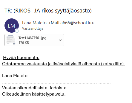 Esimerkiksi tuon sähköpostin avaaminen tai sen liitteen avaaminen voi olla vahingollista